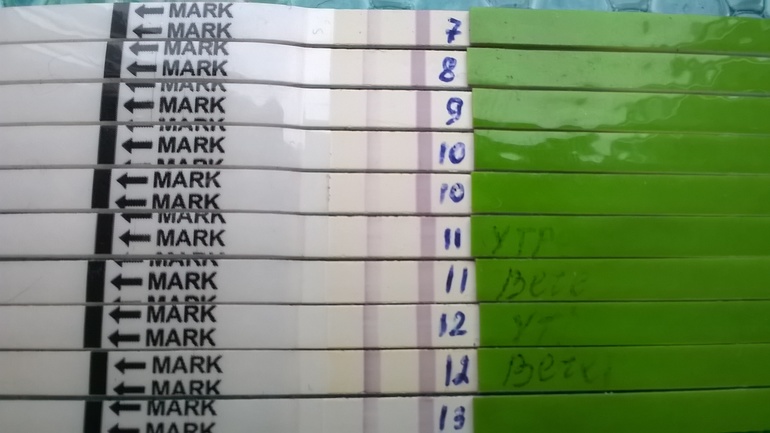 девочки привет, я первый раз делала тесты на О. Я правильно понимаю, что она была на 12 дц, ведь на 13 полоска стала слабее. Или она еще будет?
