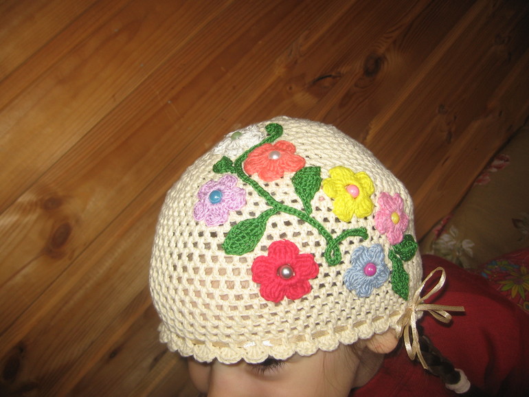 Это 7-летней девочке. Шапка цвета "топленое молоко".