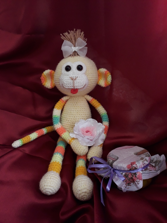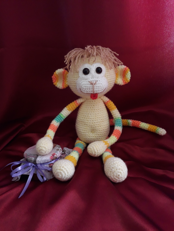 Мартышон Гоша вязался для игры "Раздача слонов" и в понедельник отправится в путь в свой новый дом)