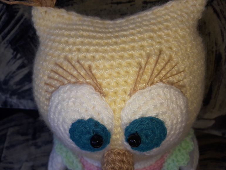 Совушка была связана в подарок любимой племяшке-первоклашке. Теперь она спит в кроватке с ребенком) Теперь немного деталей