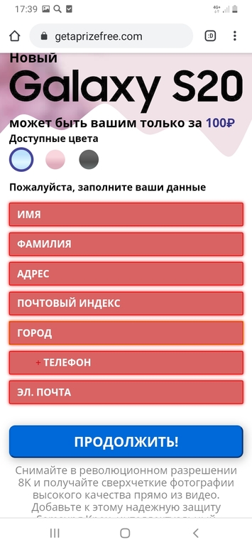 Ввожу левак и иду дальше. Ну, далее все предсказуемо)))))) Нарисована банковская карта с пустыми полями, в т.ч. те заветные цифры, которые посторонним знать не обязательно. Заполни все пустые поля, подтверди перевод 100р и будет тебе смартфончик за 70 тыр))))