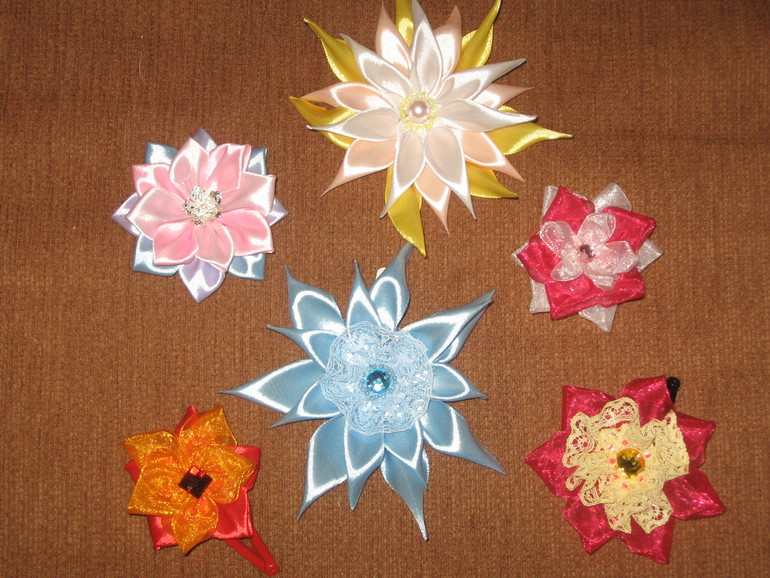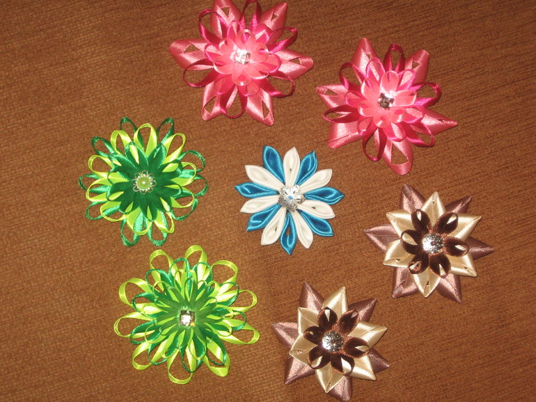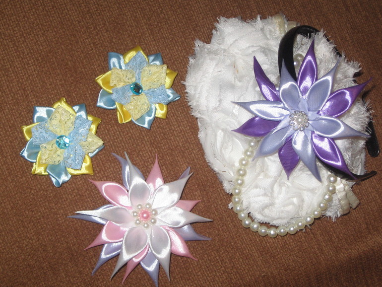 Вот, сваялось за время лежки в болезни. Строго не судите - это первенцы. У того, что справа, блестюнчики розовые на самом деле, чуть розовее ленты.