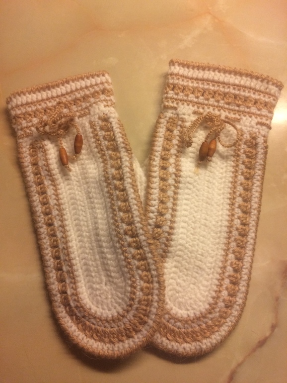 Связала варежки в подарок на НГ одной замечательной женщине. Пряжа белая Мерино де Люкс, бежевая Хризантема в 2 нитки. Планировала сделать аппликацию в серединке, но не хватило сил и фантазии((