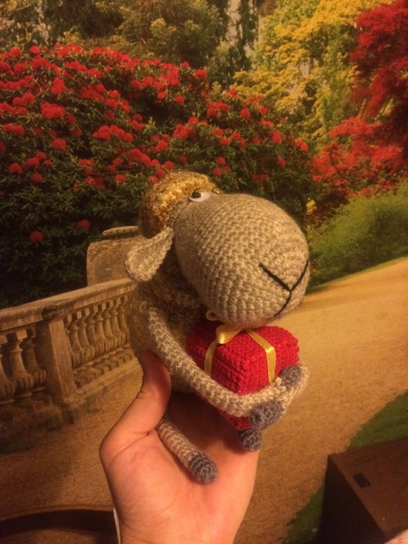 Вязала на конкурс в школу "Сделано мамой...." Еще к дню матери вязала, мои были на даче и за полдня практически сотворила поделочку)) Ну а подарочек сделался за пару вечеров, а то он какой-то совсем грустный был)) Фоткала поздно вечером, поэтому фотки ужасные((