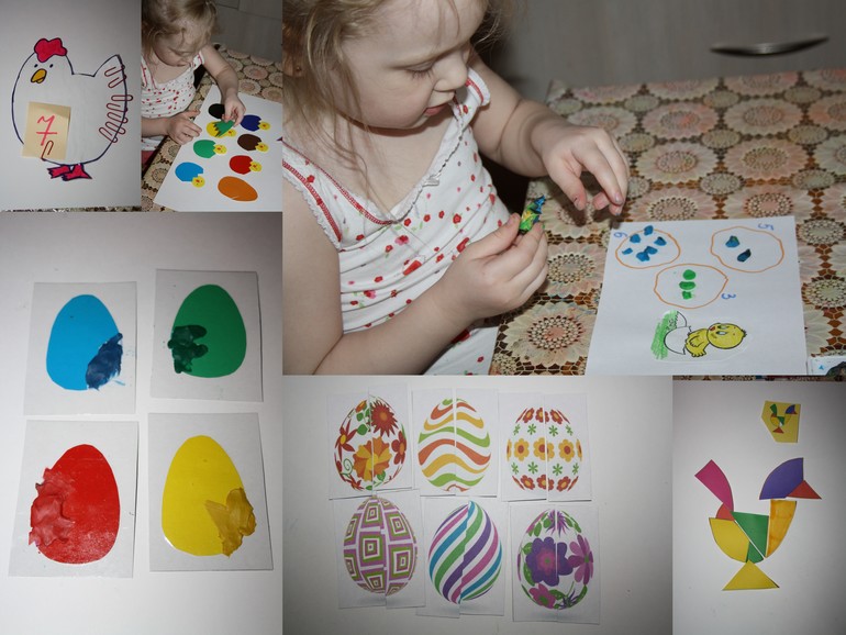 Последние дни наших пасхальных игр мы совместили. Младшая дочка заболела, поэтому пришлось Катюшке отдуваться за двоих.