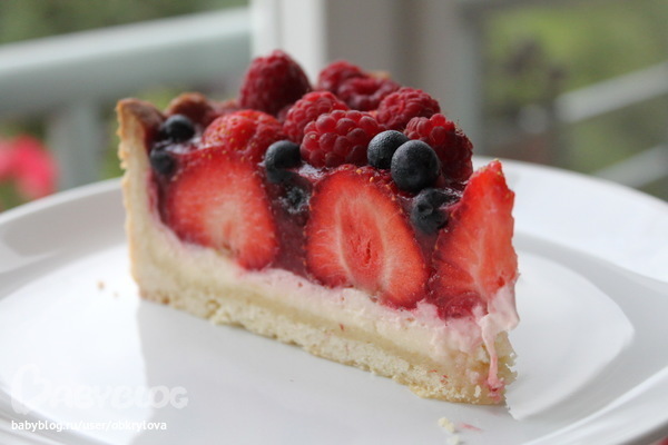 Со свежими ягодами он божественный: сбалансированное сочетание песочного теста, тонкого слоя нежного крема и кислинки свежайших ароматных ягод.Ну и, наконец-то, я доработала рецепт под свою форму для выпечки.