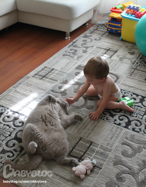 Федя дружит с котом. Периодически. конечно, получает тяжелой лапой...Я даже рада, что кот может за себя постоять. Зато ребенок к нему бережно относится, лишний раз не пристает.
