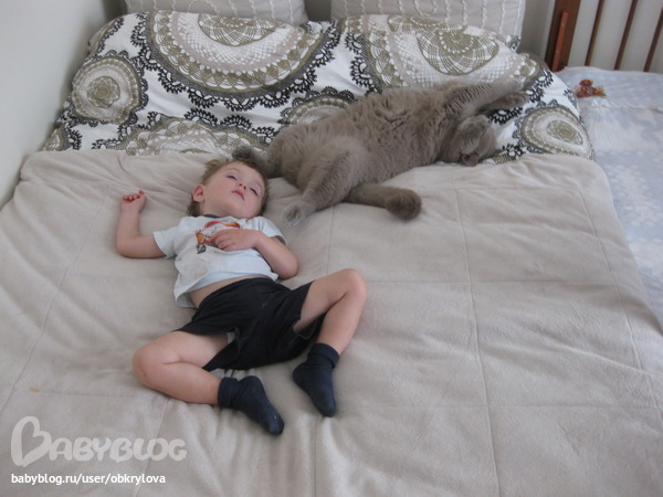 Эта фотка - совместный сон, как обычно...мои котятки...У сына и у кота день рождения в один день, но кот на три года старше.