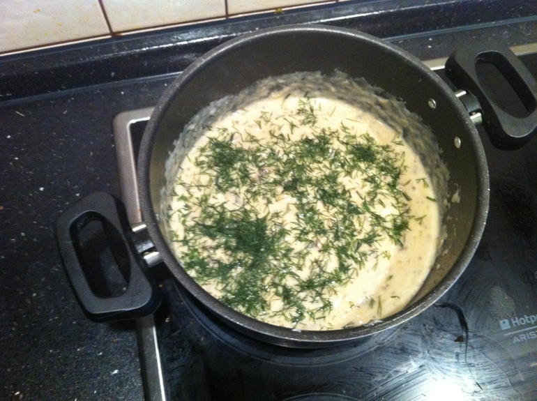 Я делала без масла и со сметаной вместо сливок. перемалывала все в комбайне) получилось недопюре, но все равно здорово)) Сверху посыпала укропом. Фотку потом выложу;)