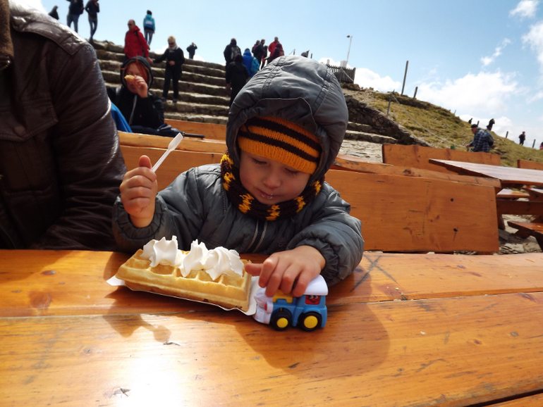 Какая красота!!!! А что уже так холодно у вас там в горах? Мы тоже недавно в Альпы выбрались погулять, но было даже жарко (высота тоже кстати 1600м). Всю прогулку в футболках были, ветровки так и не пригодились.А Владик гулял хоть чуть-чуть или только вафли кушал? :))) Мой почему-то лентяй жуткий. Больше двух километров не может... Говорит: "Папа, я устал! Возьми на ручки!". Хотя вроде с детства с ним везде гуляем... Пришлось даже рюкзак для треккинга ему купить! Бедная папина спина :))))