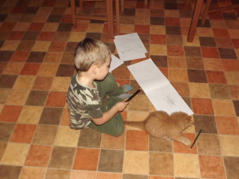 Событие шестое. О любви к животным. Мы взяли котенка. Так как жить без Котуса в пустой квартире было совершенно невозможно. И теперь Владик и Бублик лучшие друзья. Это КОШМАР!!!! Они разносят квартиру по кирпичам, играя в догонялки и прятки. Они спят вместе, рисуют вместе, и даже железную дорогу вместе строят. Я в приятном удивлении и вообще в шоке. И от Владика, и от Бублика.