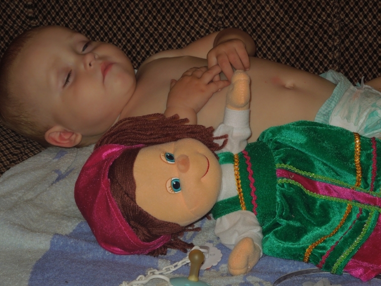 Посидели прекрасно..жарили шашлык (была и баранина 2 видов и курица), много закусок, торт..В общем все понравилось..Главное Полинка была довольна!! Фото этого дня!!