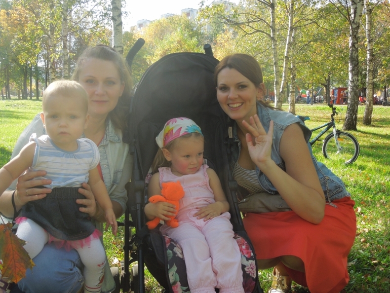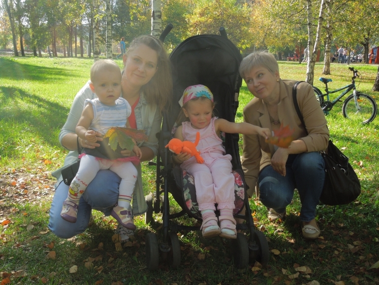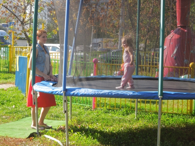 Прогулки26 сентября , в субботу...я с мамой и Полинкой поехали к Кате..они уже гуляли в парке,Варя прыгала на батуте))