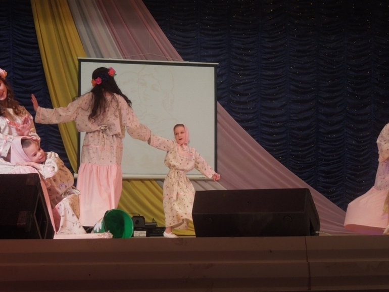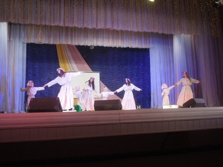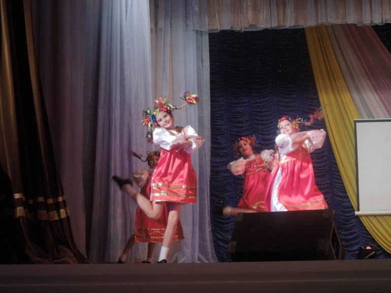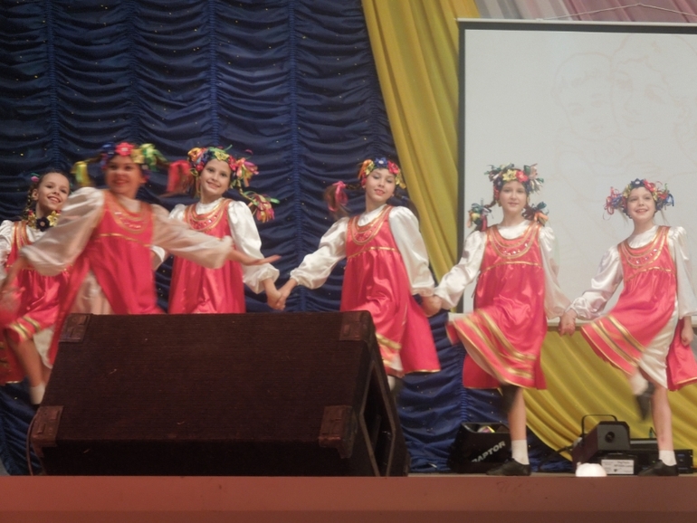 А потом выступал еще один танцевальный коллектив..Я не знаю исполнителя песни..Слова там такие.. "Матушка возьмет ведро,молча принесет воды..." Очень известная песня.. А почему они особенно запомнились..потому,что на сцену вышли 4 девчонки, высокие такие..и с ними были 4 малышки..лет по 5-6..и смотрелось это,как -будто мамы со своими дочками танцуют, очень красиво!!!