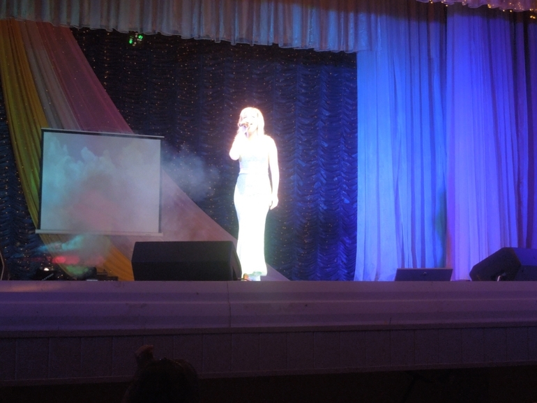 Потом выступала рыжая певица в зеленом платье..Не помню ни музыки ,ни слов.Хотя мы с Мишей сошлись на мцсли,что их было не разобрать..но сфоткала ее пару раз)