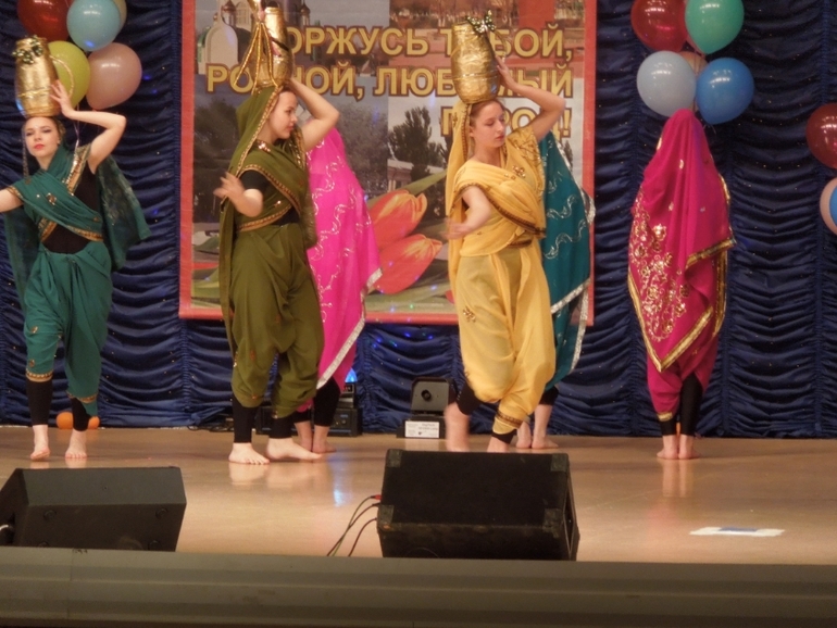Дальше выступление было коллектива в восточных нарядах и с кувшинами.Интересно.