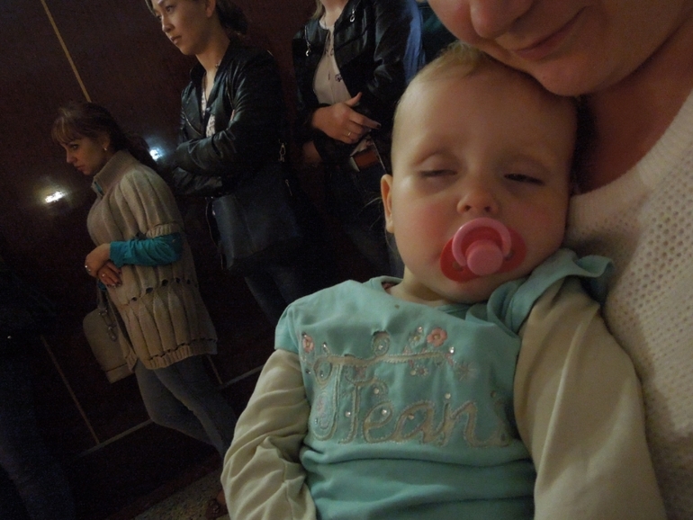 Полинка в это время спала у меня на руках)))Было ужасно жарко и неудобно,но никуда не деться))