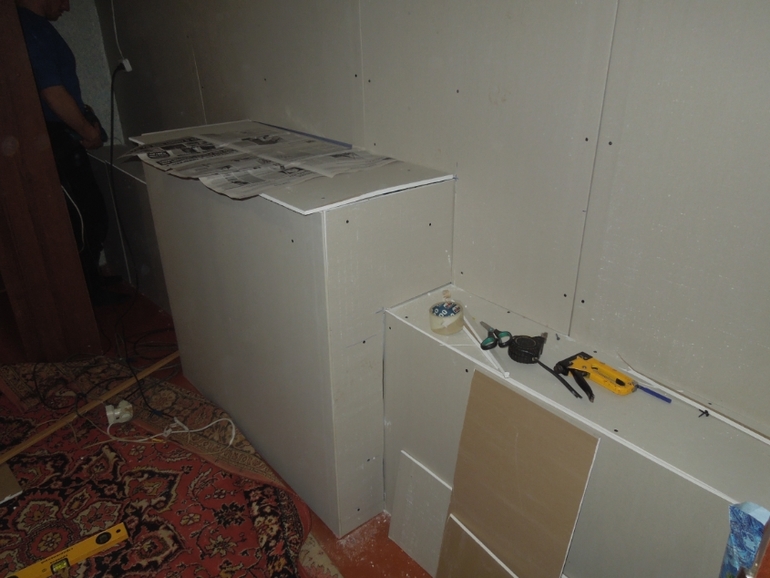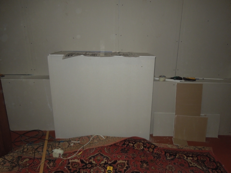 Вчера купили 4 листа гипсокартона, ведь стену тоже надо выровнять... Вот что было готово к вечеру.