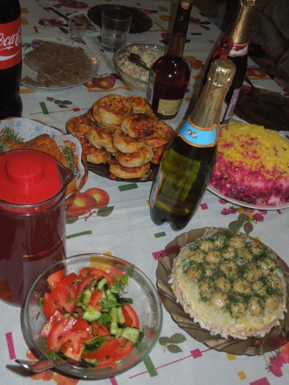 7 марта нас приглашали родители в гости. Приехали к 18 часам. собрались почти все. Свекровь как всегда накрыла вкусный стол, придумала веселые конкурсы. Мы и шарики лопали по командам-Миша+Юля и Леша+Таня. Все представители мужского пола читали женщинам стихи по бумажкам), дети собирали с пола с закрытыми глазами бумажные деньги. Еще все мужчины спели песню для милых дам. В общем хорошо посидели.