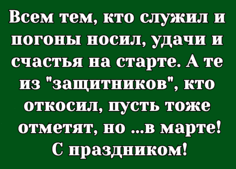 Ну, и вроде,дети тоже не защитники Отечества..но их поздравляем ..как будущих!
