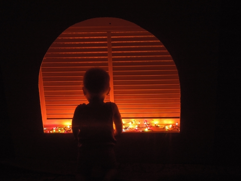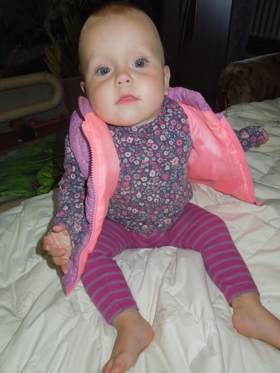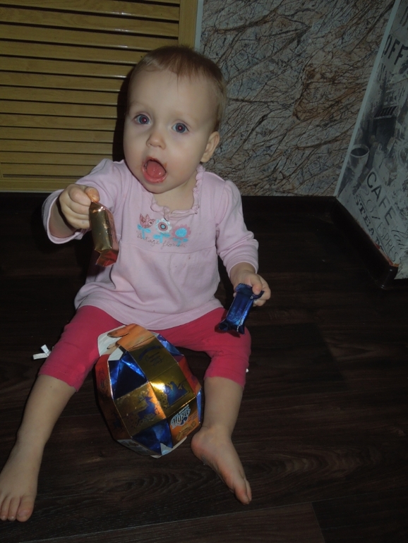 Полина все время вот так просидела..смотрела на лампочки)) Ей очень нравится)))