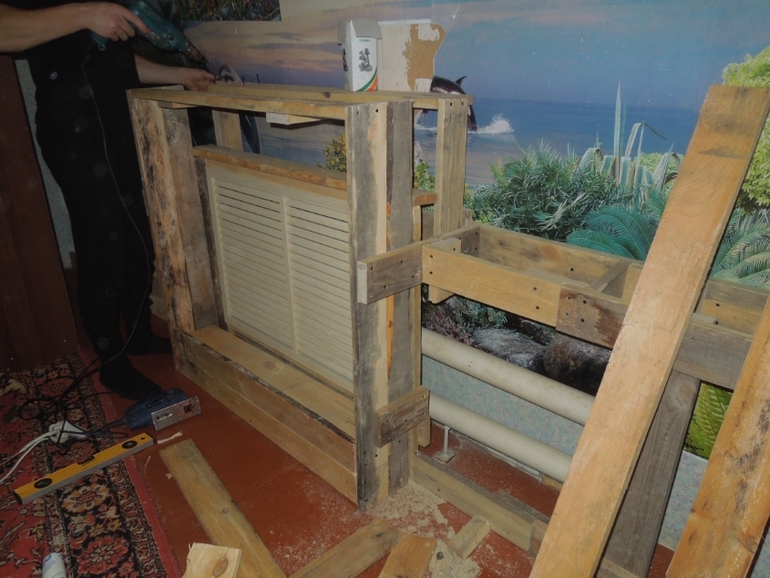 В первый вечер был сделан каркас под гипсокартно около самих батарей и задняя стенка камина. Пока не понятна задумка, но уже вырисовывается что-то...