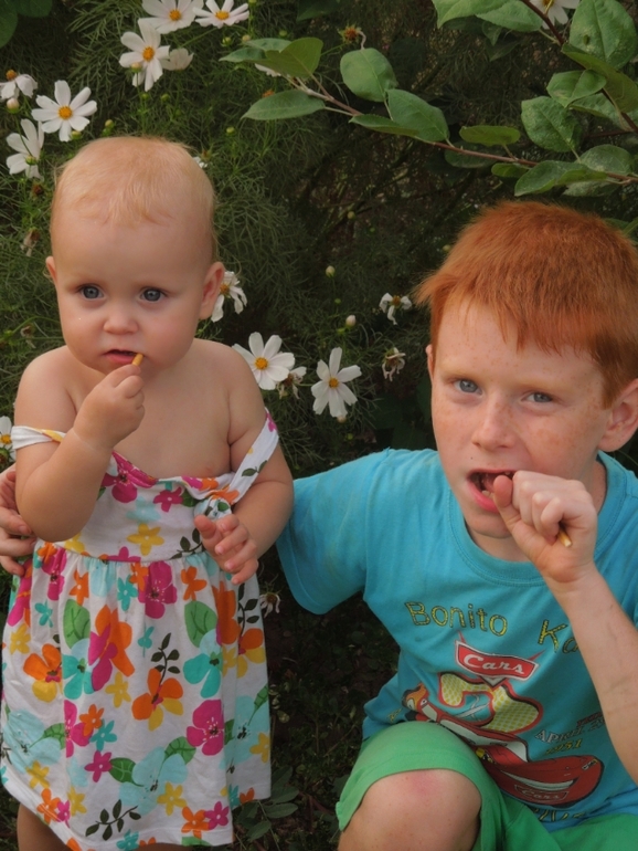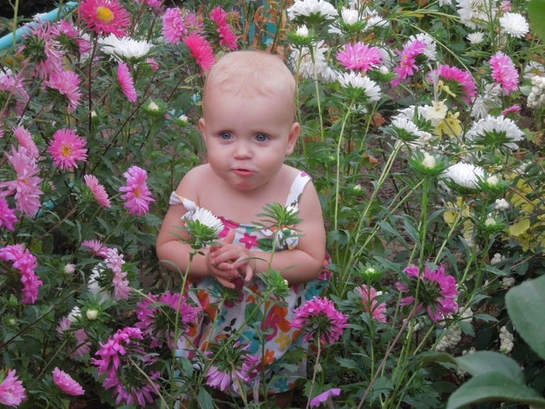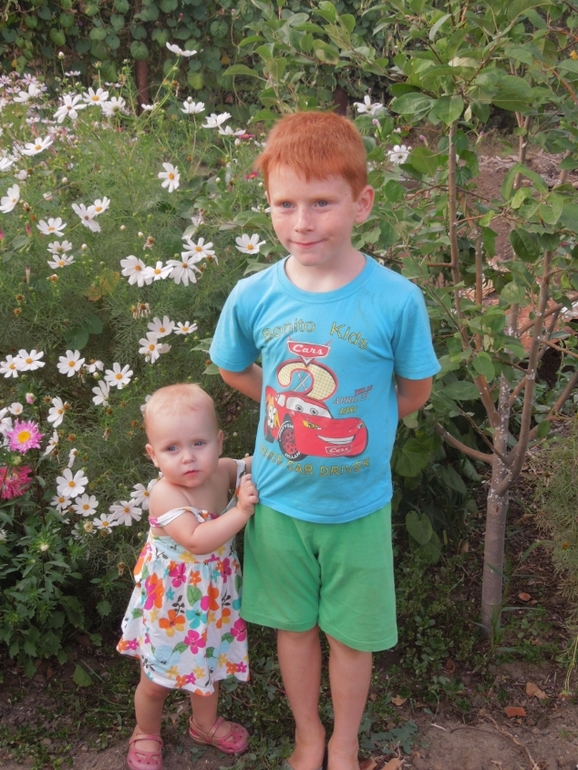 Детей фоткала возле цветов..))