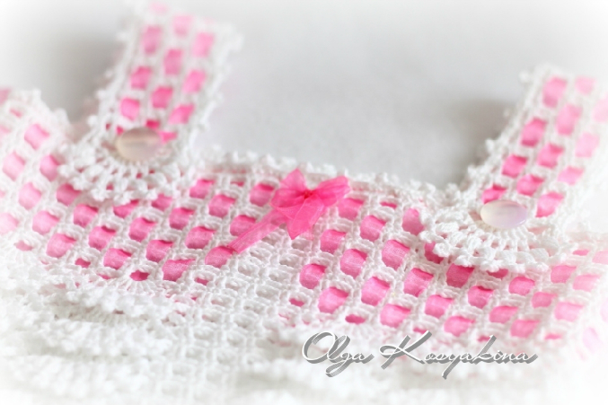 вязали такую красоту в он-лайне, вяжется легко, быстро) хлопок вита коко, крючок 1,25. ленты из органзы, пуговки. вязала для доченьки. бретельки сделала на пуговках.