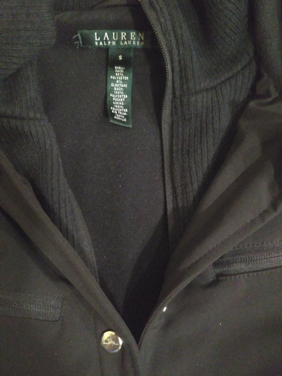 Застегивается на кнопки, за ними "фальш-вязанка на молнии-смотри фото, горло-свитер.