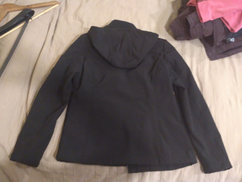 материал похож на неопрен-плотный не промокает и не продувается, внутри "начес типа флис", большой глубокий капюшон. На всех молниях и кнопках логотип, а также объемный лого на рукаве.