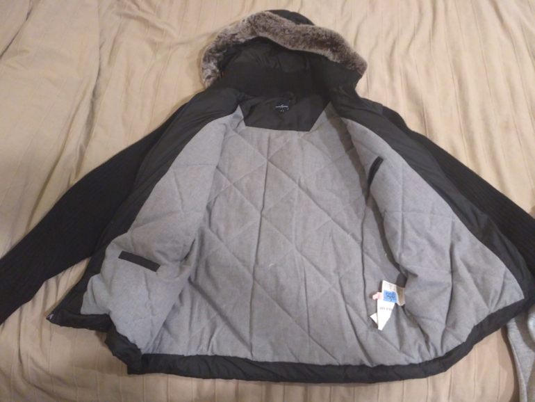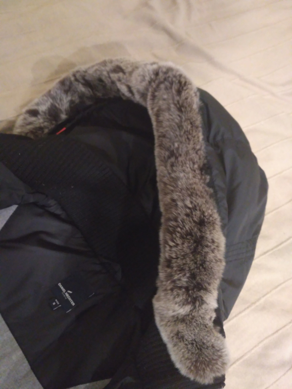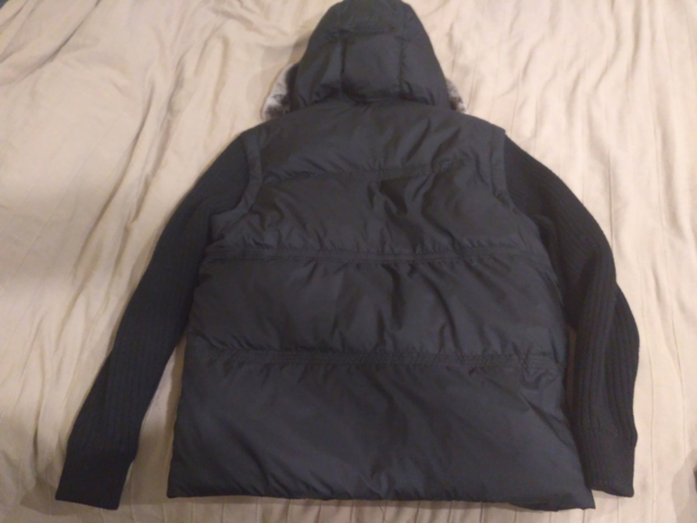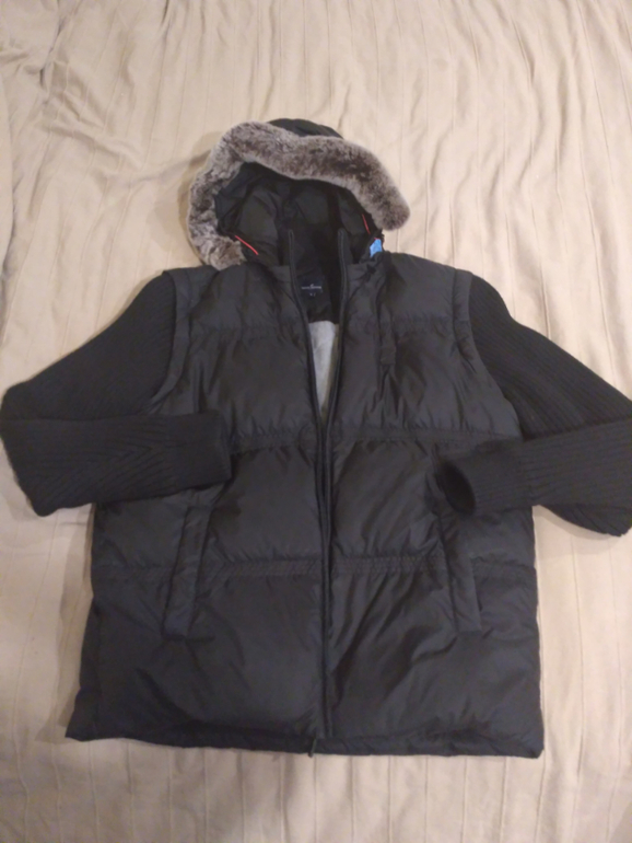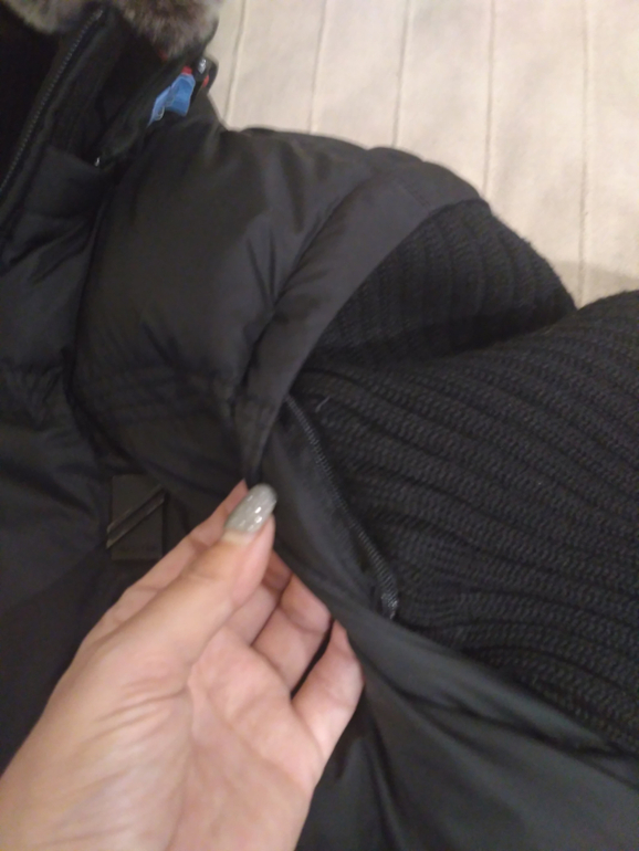 Состояние нового. Цвет черный, рукава вязанные плотные/толстые с подкладкой не продуваются на молнии. Утеплитель пух/перо. Капюшон с натуральным мехом. Размер 42-44, на рост до 168-170. Разбираем гардероб, занимает место, отдам за символическую стоимость, оригинальная 420евро.