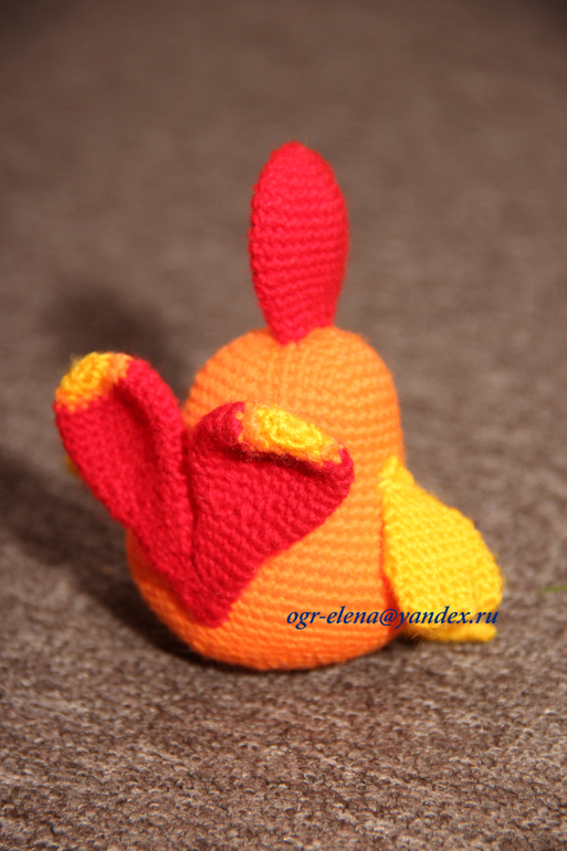 Связана из акриловых ниток. Внутри - поролон. Высота грани 19 см.