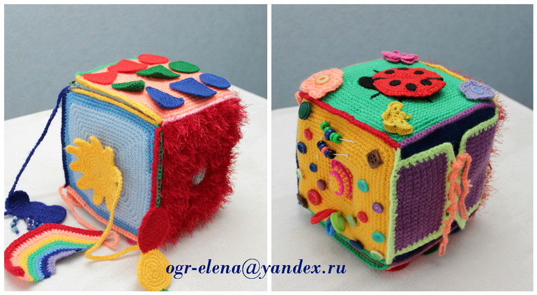 Моя первая развивающая игрушка - куб, связанный крючком. Вдохновили на создание идеи из интернета. Связался для моего сына еще 3 года назад. До сих пор одна из любимых игрушек.