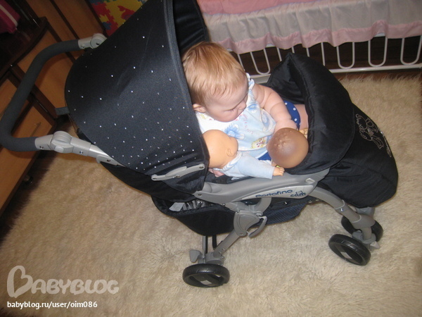 ура,ура!!!!тратим подаренные денежки)))))наконец я отдала огромную ,тяжёлую и купили мы Лизусику прогулку))))))тапками кидайте,если хотите,но мне цвет нравится)))))супер удобная,складывается пополам,дождевик есть и теперь у нас свободный коридор!!!!!Лизуне очень нравится,мы в ней и дома катаемся по часу даже может сидеть вместе со своими пупсами))))а вот и она))))