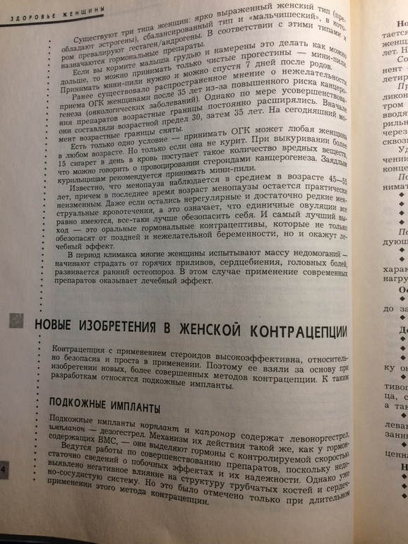 Несмотря на то, что энциклопедия была выпущена в 2002 году, я почерпнула много нового для себя. Я поняла, как действуют контрацептивы и какие у них противопоказания. Сейчас, конечно, появились новые препараты, но, думаю, принцип тот же.