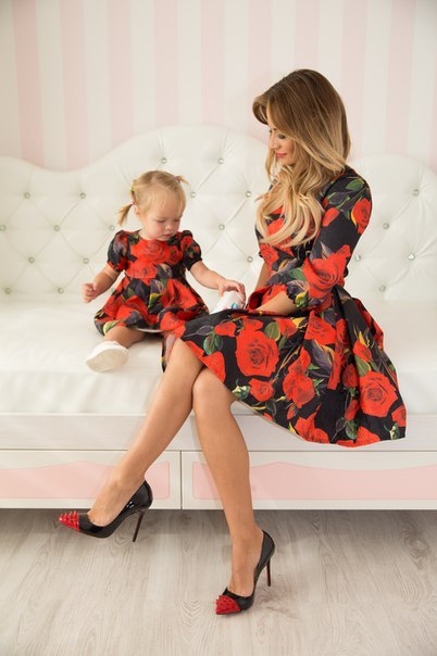 Дд, хочу костюм с розами детский и взрослый, и рубашку в горошек детскую и взрослую, и платье одно детское с розами возможно так?