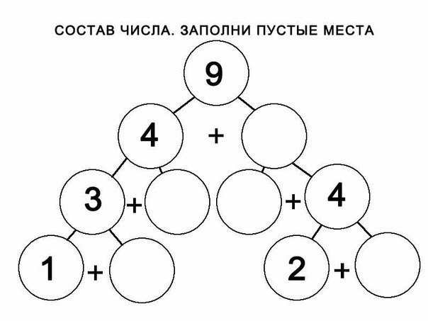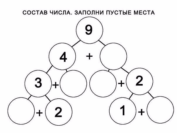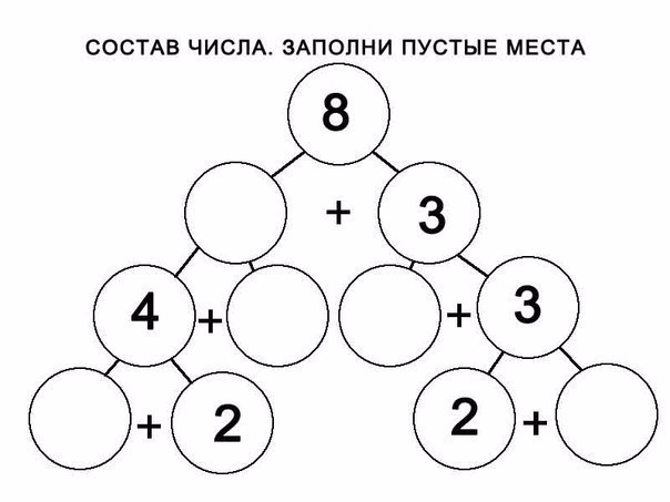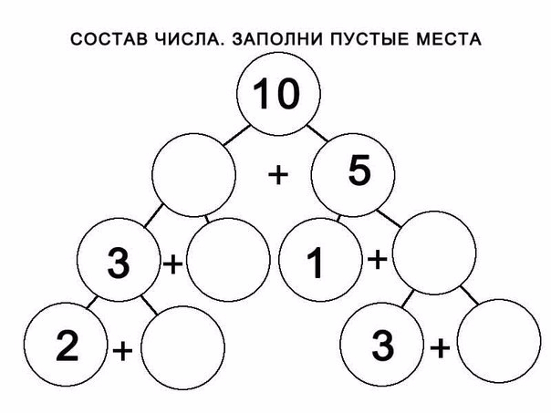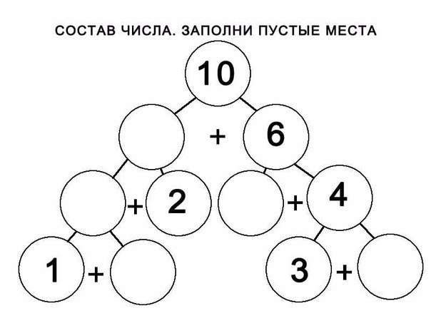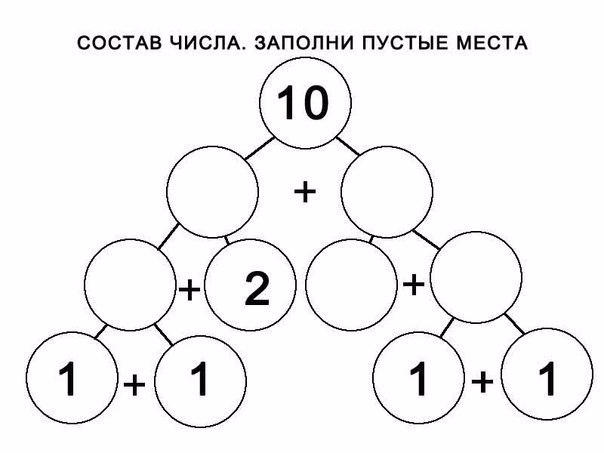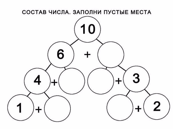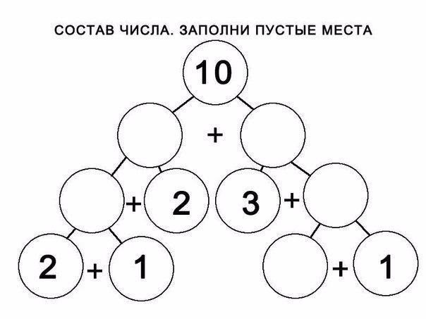 Для того, чтобы состав чисел от 1 до 10 действительно отложился в детских головках, предлагаем скачать карточки-задания на состав числа.