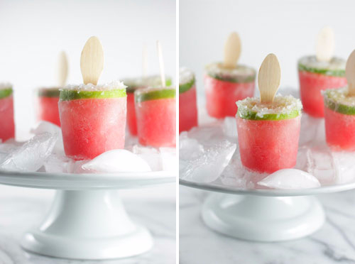 Поместите все ингредиенты в блендер и смешайте до получения однородной массы и растворения сахара.Процедить состав через сито, чтобы удалить арбузной мякоти. Останется около 5 чашек (по 40 мл) смеси мороженого.Заморозить на ночь и посыпать крупной солью перед подачей. Наслаждайтесь!