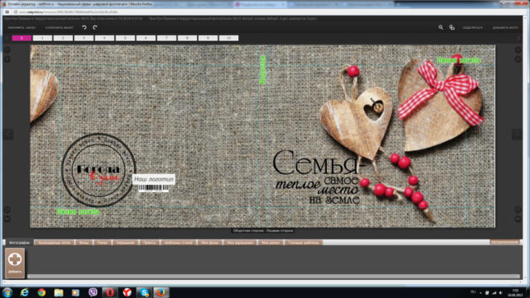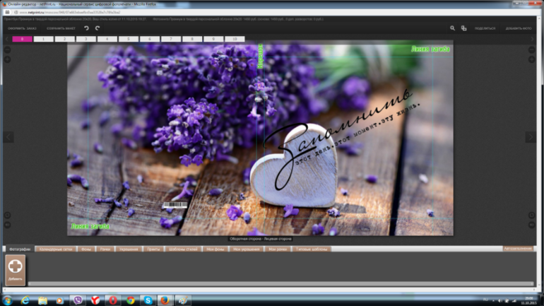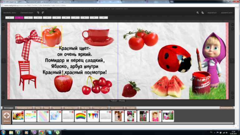 Заполните 8 разворотов фотографиями, сохраните макет и добавьте в «Корзину»