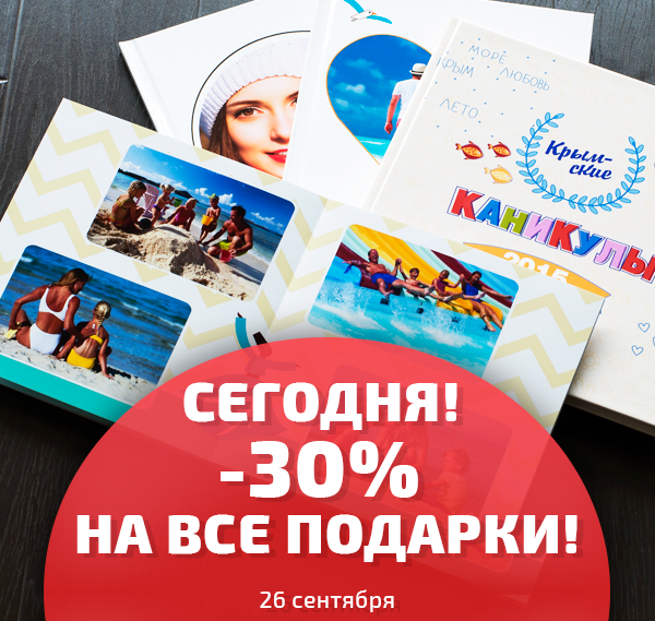 А еще Торопитесь на нашу распродажу - сегодня и до 25 ноября на сайте действуетскидка 15% на все фотокниги и сувениры вот тут !При оформлении заказа в поле «Промокод» введите: 55PHOTO![]()