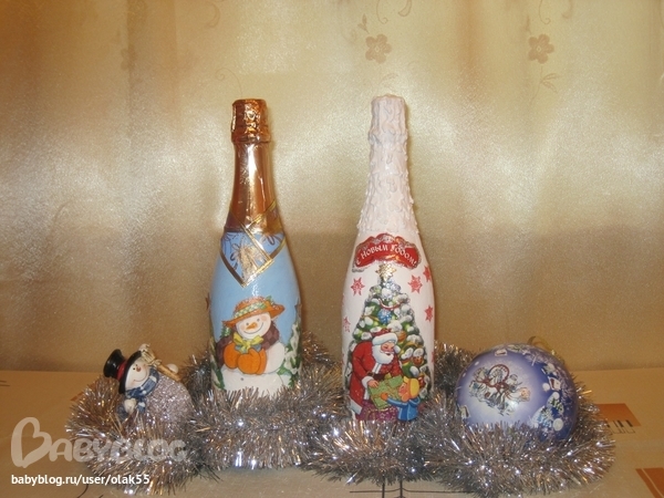 Вот такие бутылочки к Новогоднему столу у меня получились. смотрю на них, и сразу ощущаю приближение праздника.