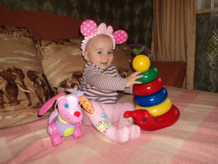 Девочки нам сегодня 6 месяцев!Стали мы совсем большие,капризные и хитрые!Папа нас хитрюгой называет)))По прежнему мы не переворачиваемся и не любим лежать на животе,мы лючше поарем и нас возьмут на руки,вот это дело нам нравится)))Мы отказались от пеленок,но под утро иногда можно запеленать так как начинается верталет руками и ногами