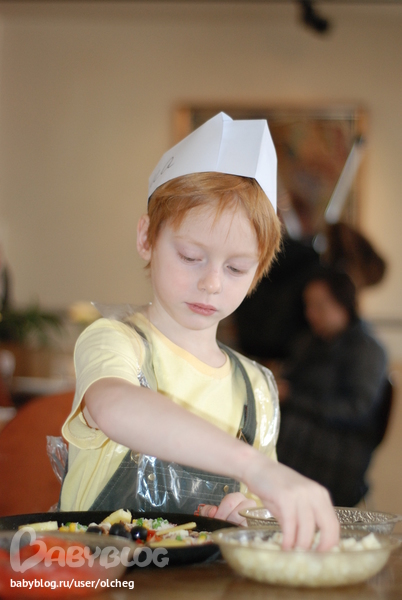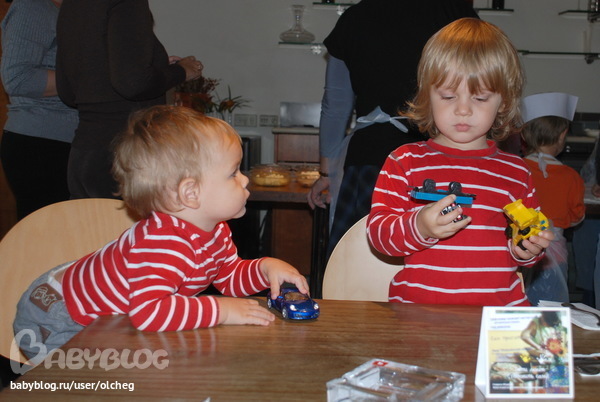 В воскресенье мы снова (уже третий раз) были в "Экспресс-Пицце" на Смоленской. Снова на мастер-классе. Но в этот раз Арины с нами не было, а мы решили, что Марку готовить пиццу рановато (хотя была возможность сделать это вместе с мамой)... Короче говоря, детки наших друзей готовили, а мы болтали и пили чай... Чудесное место, знаете ли...)) ...Очень удивились с подругой, обнаружив, что одели детей в практически одинаковые кофточки! Умилялись этому всё чаепитие))