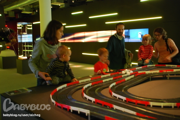 Марк же больше всего проникся стендом, рассказывающим об электромобилях. Там (помимо прочего) "гоночная трасса", два авто и пульты... Нажимаешь кнопку, и машина едет. После каждого второго круга Марк порывался забрать авто с собой (на пит-стоп, видимо))