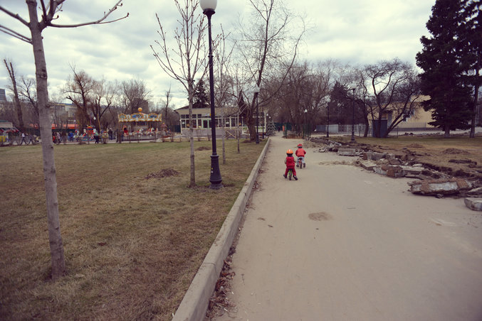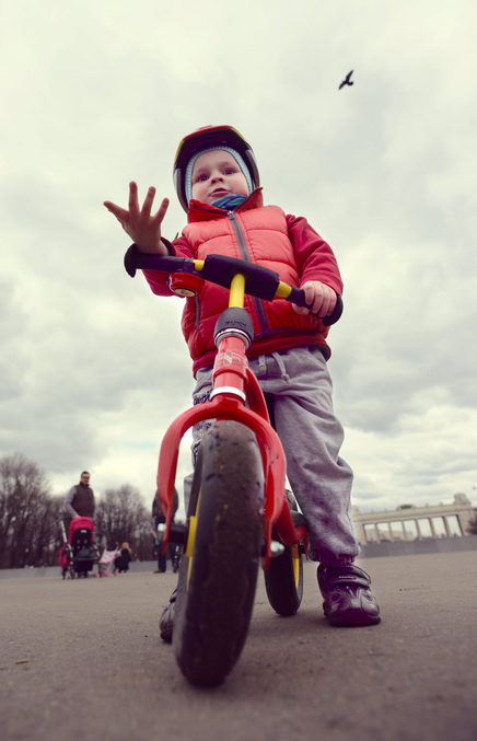 Вот он - чемпион! Самокатится к парку аттракционов, чтобы сменить на время беговел (на карусельного коня).