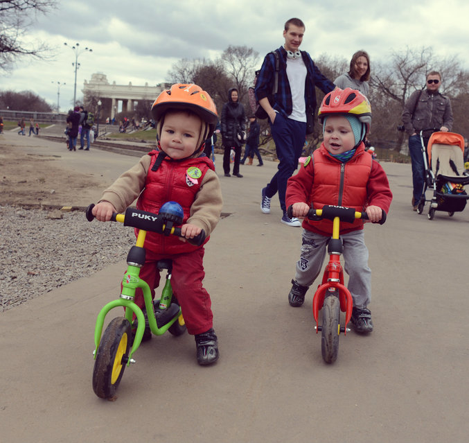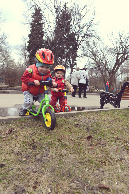 были сегодня в Парке Горького на весенней Беговелогонке 2013! На самом деле, мы приехали болеть за Семена (сына Даши), но пока его ждали, подогреваемые общим весельем, решили сами поучаствовать в соревнованиях! Зарегистрировались, дождались заезда самых маленьких (которые, так сложилось, все равно были старше нас) и погнали!!! Марк приехал вторым беговельщиком (участвовали еще и самокаты) и выиграл карандаши! Был доволен собой и просился еще!)) Кстати, после заезда стал гораздо быстрее ездить на беговеле.