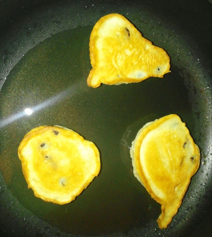 Выложила тесто на сковороду и жарю на среднем огне сначала с одной стороны до зарумянивания.