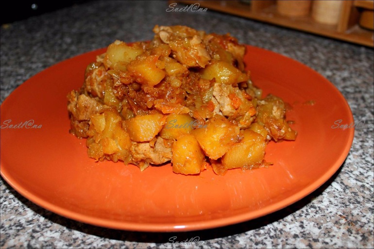 Хоть у меня и есть на даче газовая плита, удобней мне там готовить в мультиварке, решила объеденить 4 рецепта в одном посте: тушёная картошка с уткой, картошка по деревенски, бигус, толчёная картошка с сыром (у меня пармезан)