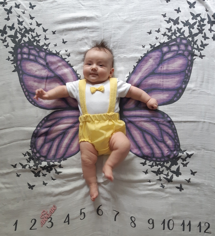 Достаточно уверенно держим головку в положении вертикально и хорошо удерживаем несколько минут лежа на животике. На животике лежать не любим, 3-5 мин. и начинаются капризы.