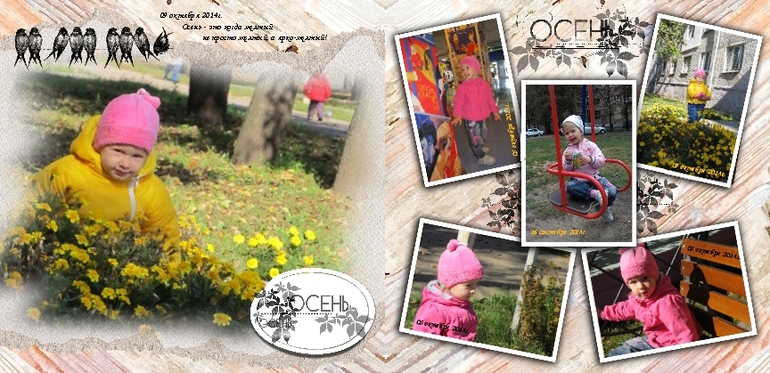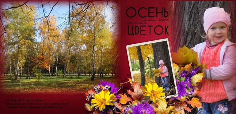 Как здорово отправить всех на дачу, а самой заняться любимым делом))) Вот еще развороты осенней книги. На этот раз это наш импровизированно-срочный фотосет в парке Артема.